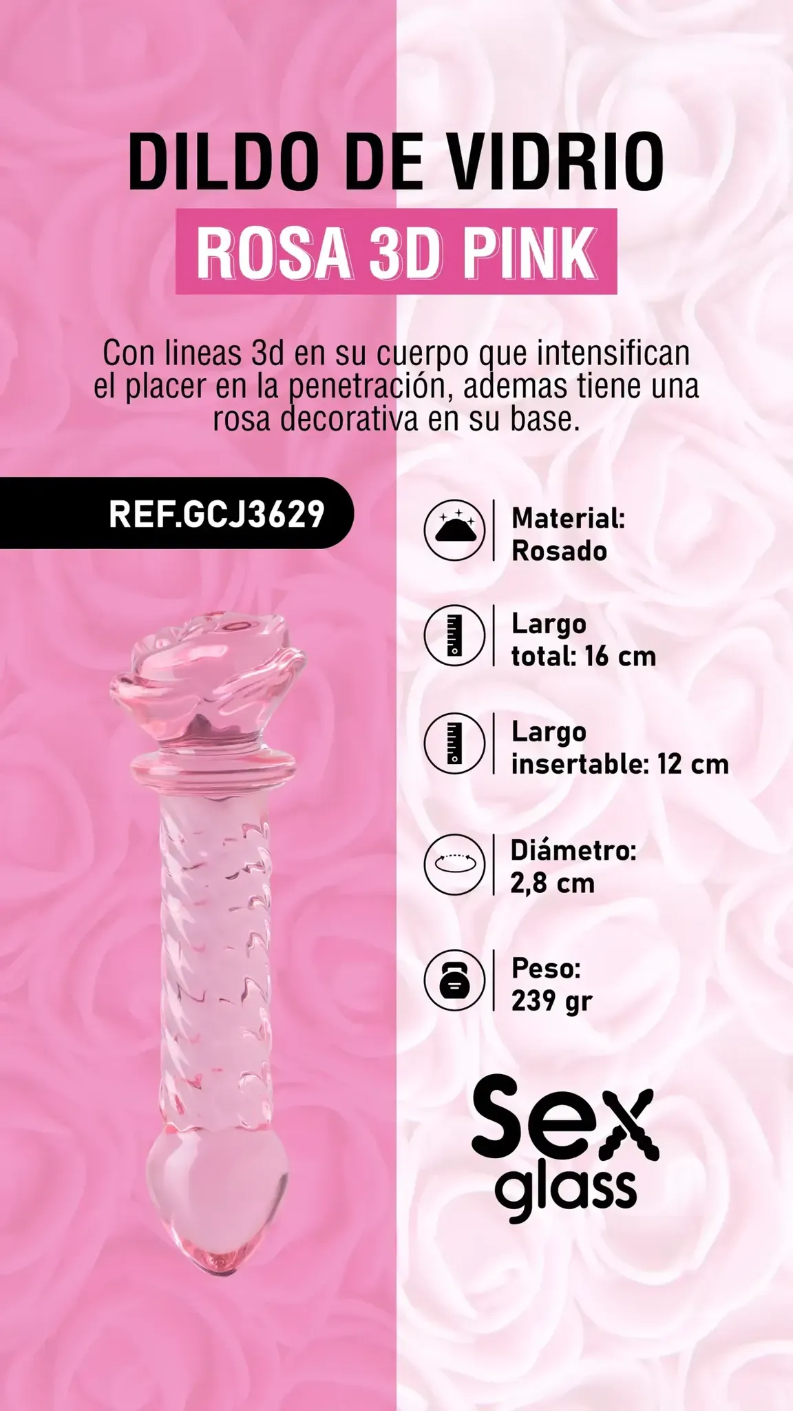 Dildo de Vidrio [Glass] Rose 3d Pink 16cm