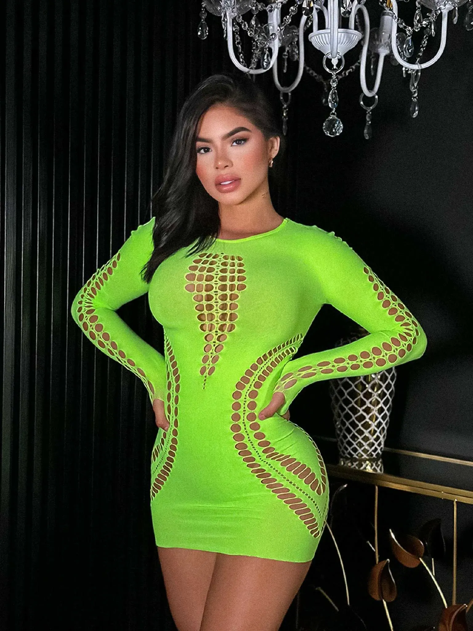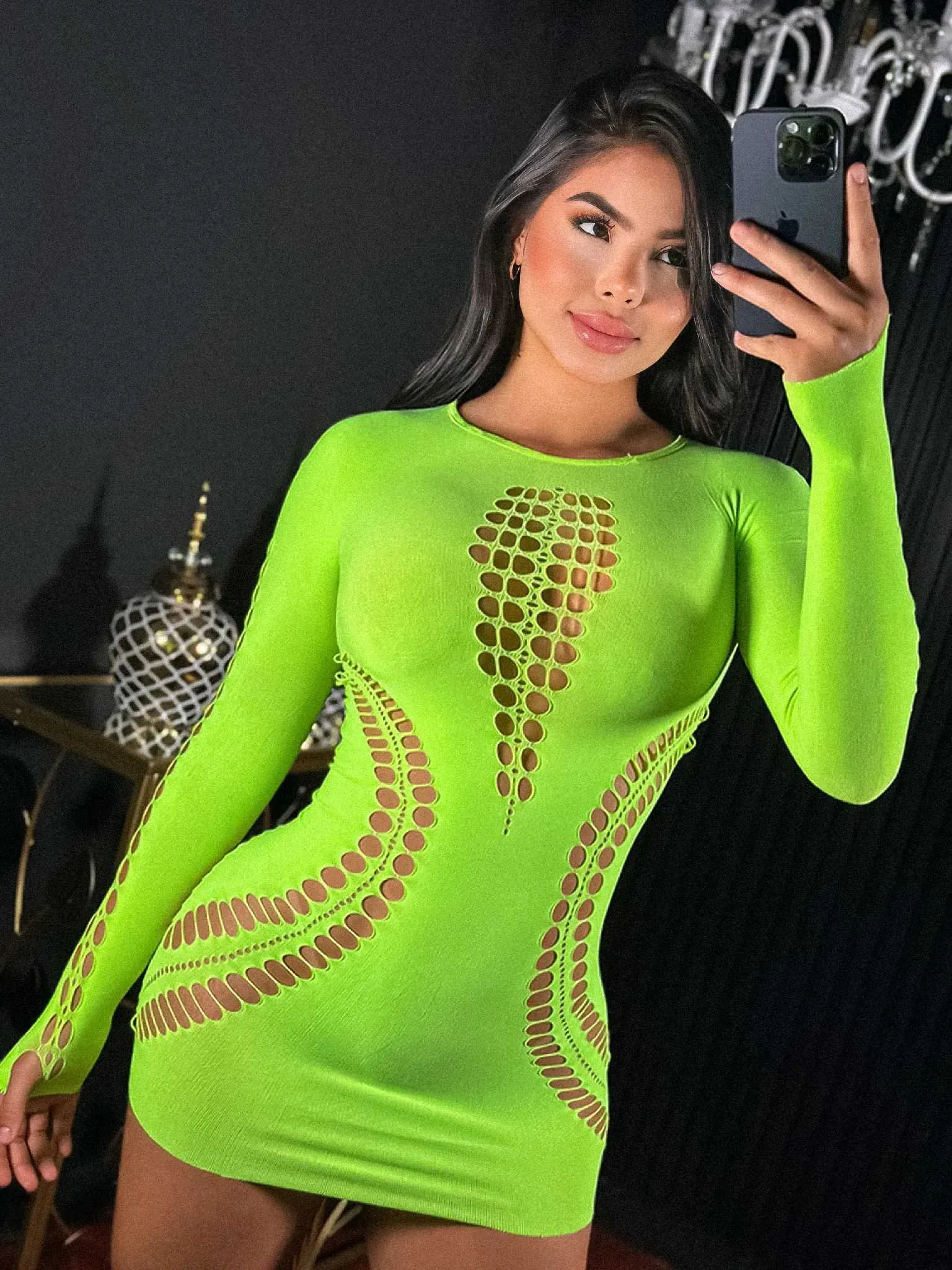VESTIDO MALLA [TELA GRUESA] VERDE NEÓN 💚 REF. QH524