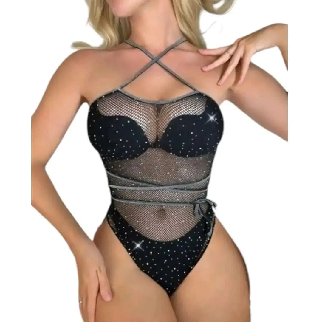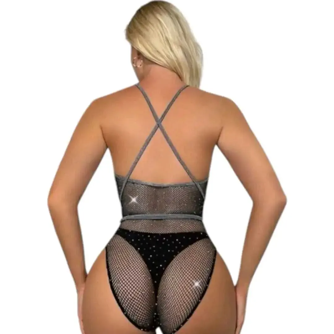 - Presentación: Pieza en Malla en nylon de DuPont y spandex, con apliques de piedras brillantes