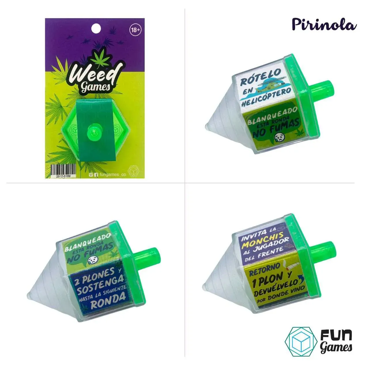 Juego para Fumar Porros, gírala y hechate a reir con las 6 pruebas que trae la pirinola weed games.