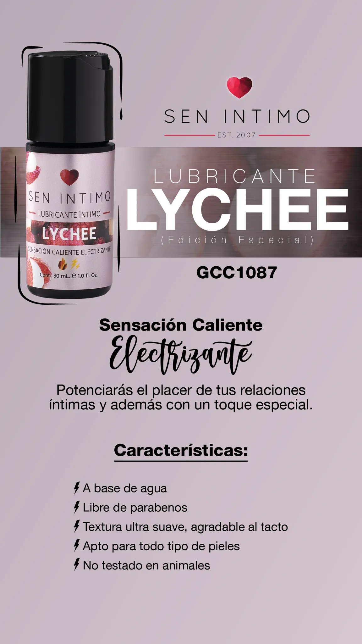 LUB SENSACIÓN CALIENTE ELECTRIZANTE EDICIÓN ESPECIAL LYCHEE 30ml By. SEN ÍNTIMO