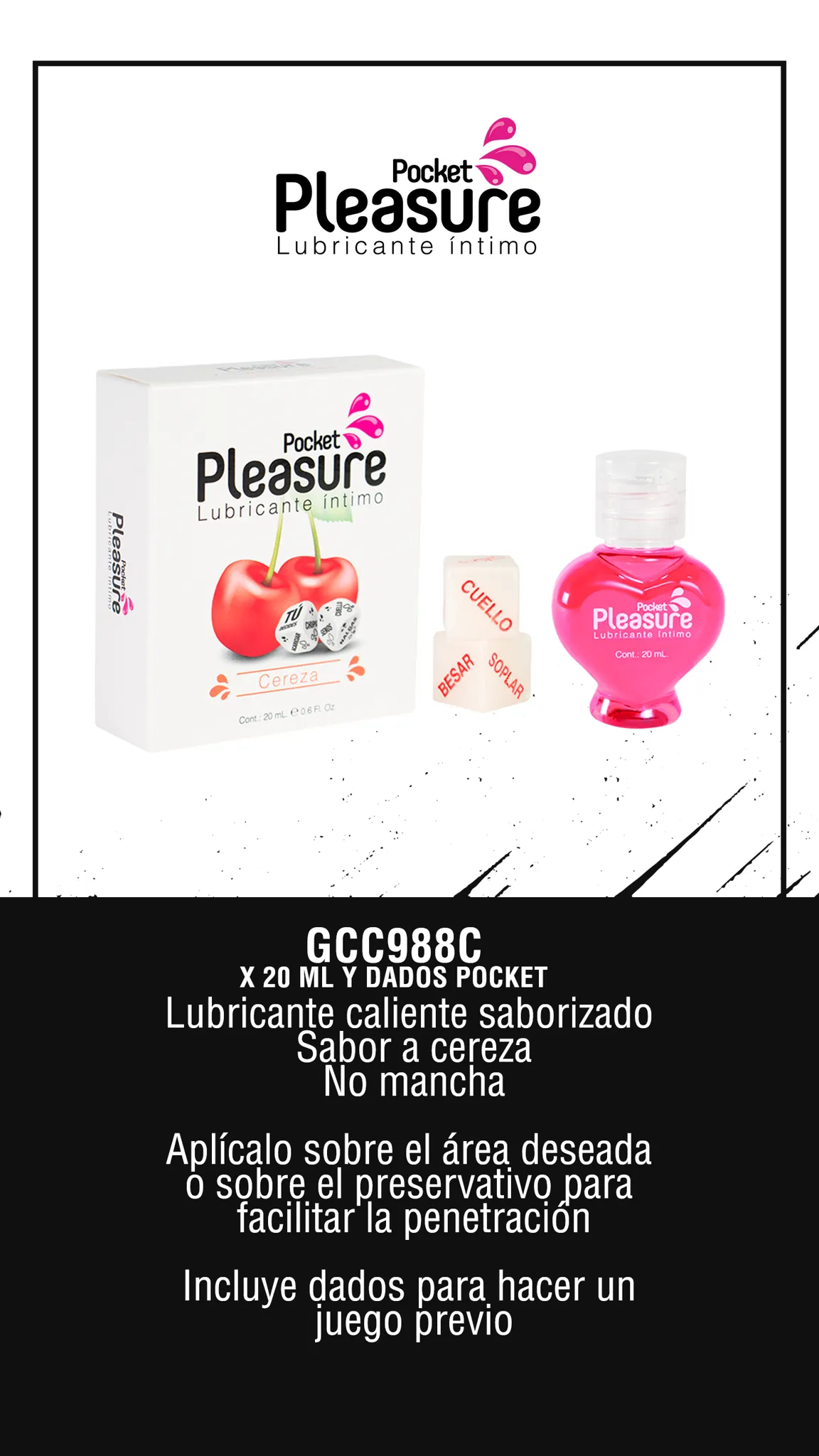 LUBE SEXO ORAL CALIENTE [20ml] 🍒 + DADOS FLUORESCENTES By. Pocket Pleasure
