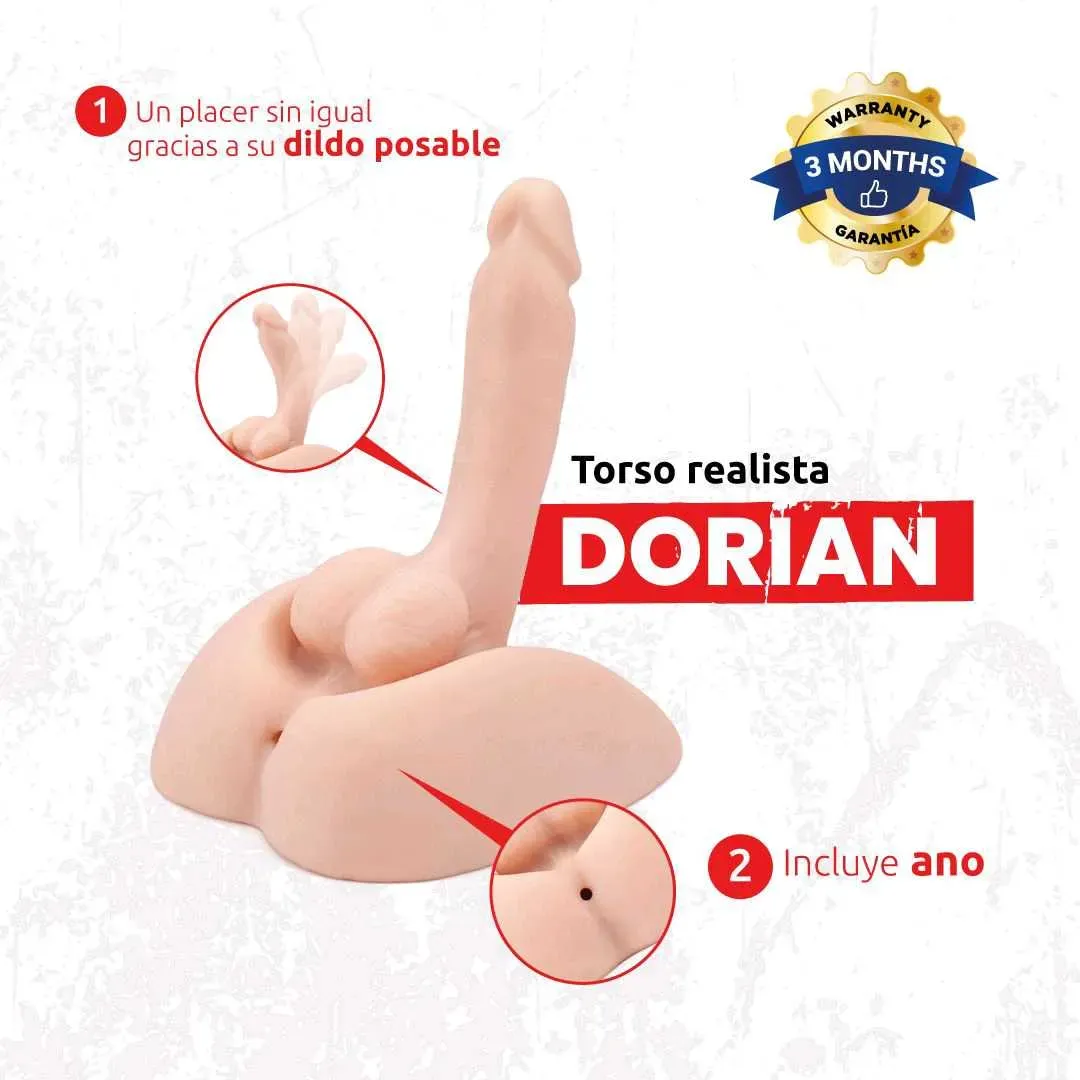 - Diseño Anatómico Detallado: El Mini Torso Dorian incluye un dildo realista y un orificio anal para masturbación, proporcionando una experiencia visua...